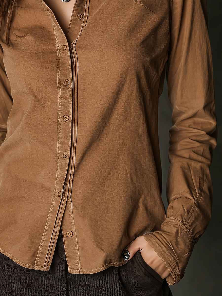 Bohemian Washed Cotton Shirt Collar Slim Fit Blouse