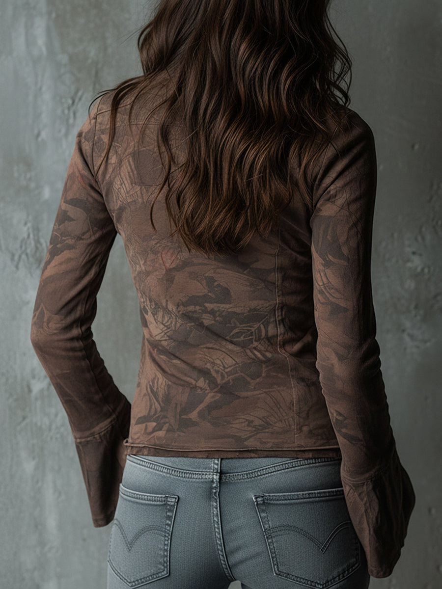 Boho Vintage Printed Cotton Blend Bell Sleeves Blouse